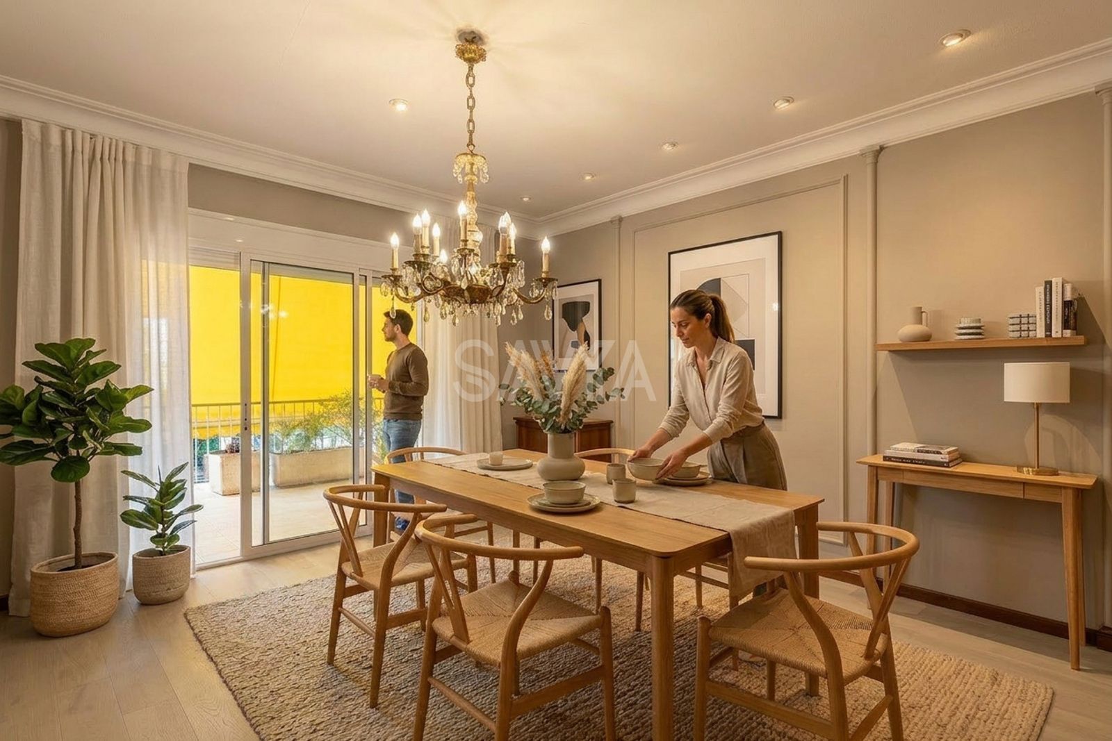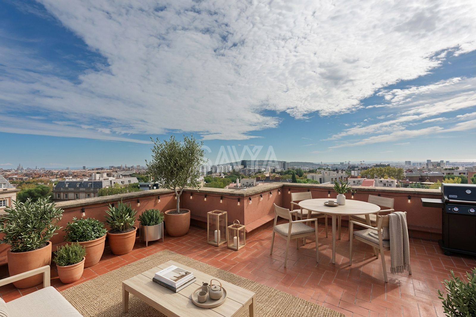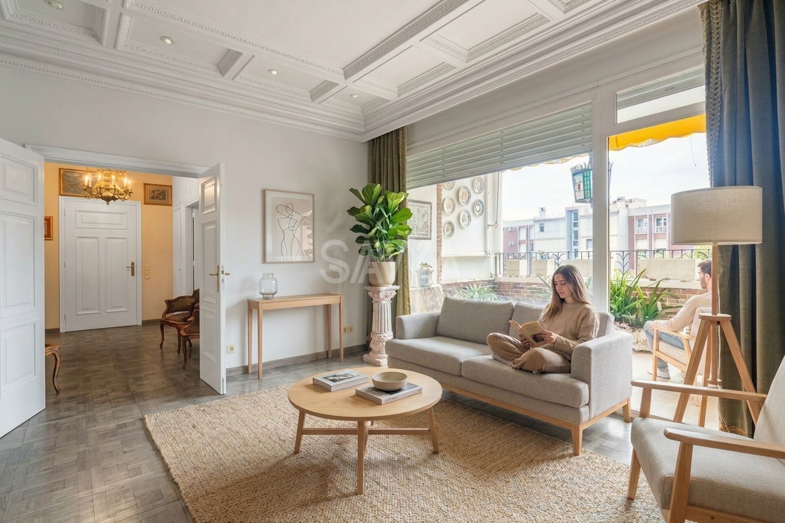 La zona de dia està presidida per un gran saló exterior, amb ambients diferenciats i sortida a una terrassa orientada al sud, ideal per gaudir de llum i tranquil·litat; en continuïtat s’ubica el menjador i, com a peça independent, un despatx que permet separar la feina i la vida privada.