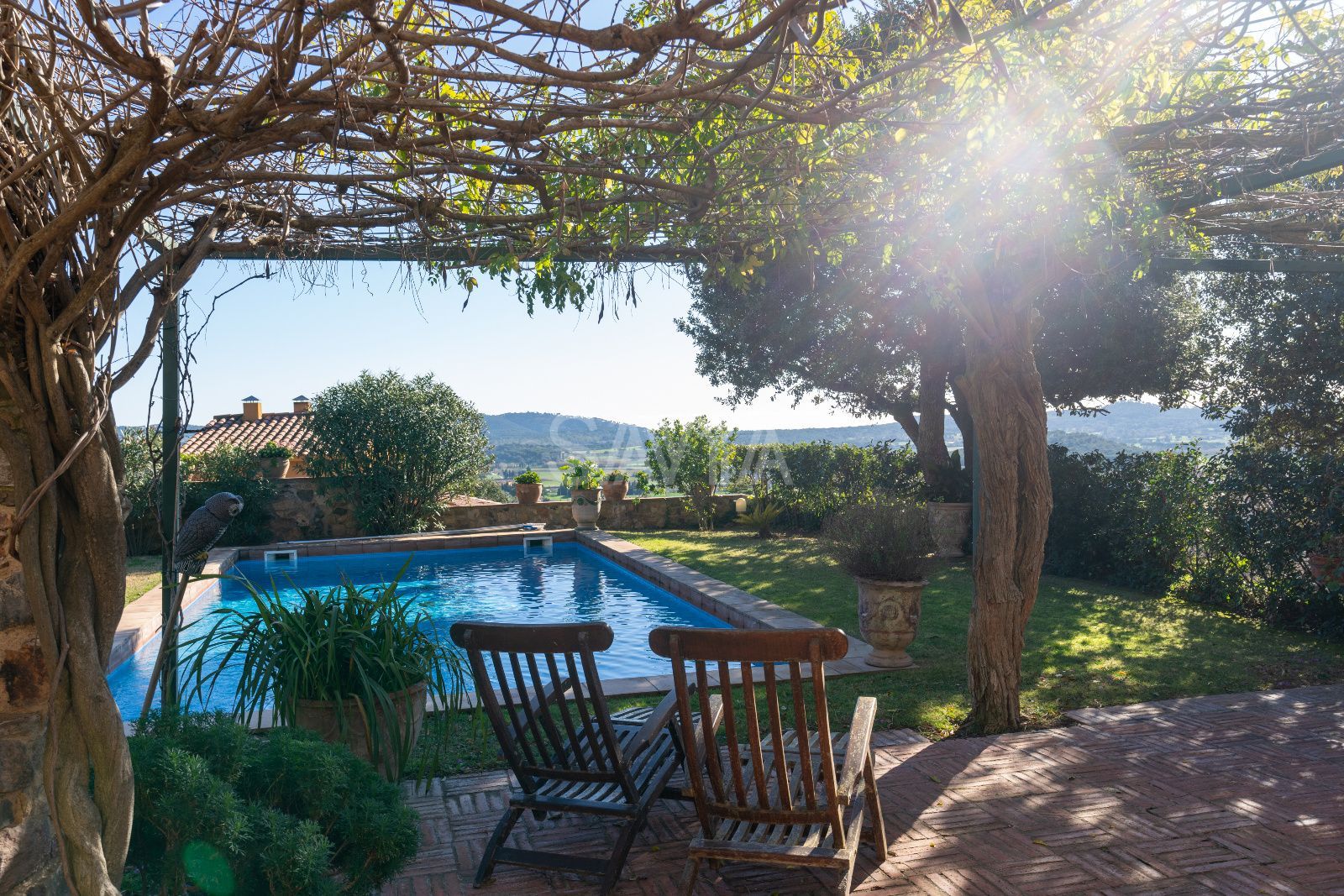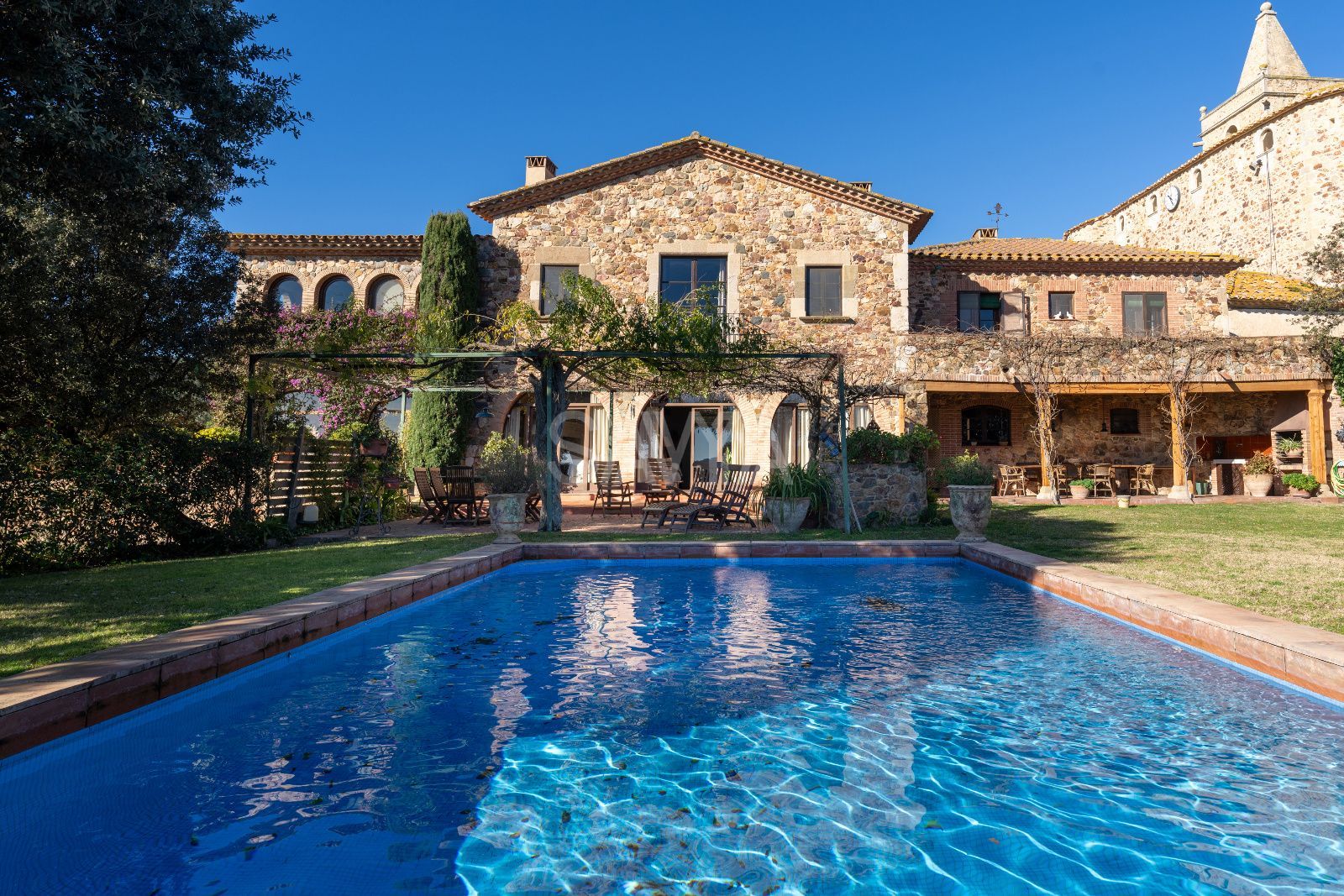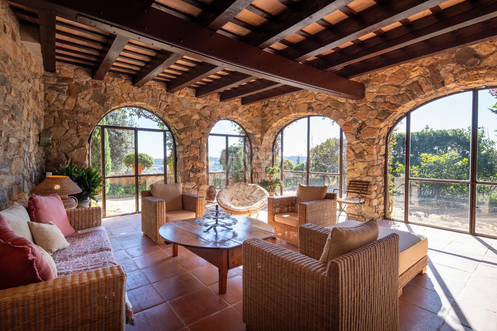 Esplendor i distinció al cor de Mont-ras: una peça arquitectònica única a la Costa BravaUbicada en un dels enclavaments més serens i codiciats de la Costa Brava, es presenta aquesta majestosa propietat senyorial que domina el paisatge des de la falda d'una colina a l'encantador municipi de Mont-ras. Situada a només deu minuts de les platges més exclusives del litoral, aquesta residència ofereix un equilibri inigualable entre la privacitat més absoluta, la independència residencial i unes vistes panoràmiques que abracen tota la plana fins a arribar a la línia de l'horitzó marí.Arquitectura noble i patrimoni històricLa propietat destaca per una fesomía noble i robusta, on cada detall arquitectònic ha estat preservat amb un zel impecable. L'estructura combina magistralment la solidesa de la tradició constructiva catalana amb les exigències del confort contemporani. Els seus murs gruixuts no només aporten una empremta històrica, sinó que garanteixen una inèrcia tèrmica excepcional durant tot l'any.Distribució interior: Elegància en cada estançaL'accés a la vivenda principal anticipa la magnitud de la finca. Un impressionant vestíbul amb techos abovedats de pedra original dóna la benvinguda als convidats, connectant amb una biblioteca privada i un saló-comedor distribuït en diversos ambients, dissenyat tant per a la vida familiar com per a la recepció d'infants a gran escala.Planta Baixa: A més de les zones socials, aquest nivell compta amb una cuina de grans dimensions amb accés directe al jardí, un bany de cortesia i una suite independent amb bany privat, ideal per a convidats o personal. Un porxo envidrigat permet gaudir de la llum natural en qualsevol estació.Planta Superior: Una escala de pedra de disseny senyorial condueix a la zona de descans. Aquí s'ubiquen cinc suites addicionals, cada una amb el seu propi bany complet. La suite principal s'erigeix com un santuari privat, dotada d'un generós vestidor i àmplies finestres que actuen com marcs naturals cap a les vistes espectaculars de l'entorn.Un oasi exterior privatL'exterior ha estat concebut per al gaudi del clima mediterrani. El jardí perimetral alberga una piscina de disseny, àmplies zones de porxo i una encantadora construcció independent: una "mini casa" d'invitats que disposa de habitació i bany propis, garantint la màxima autonomia per a les visites.Detalls d'alta gamma i moble de col·leccióLa propietat és un catàleg de materials nobles: bigues de fusta vists, terres de gran qualitat i una decoració exquisida basada en peces d'antiquariat recuperades amb extrem gust. La fusteria i el mobiliari fixa reforcen el caràcter exclusiu de la finca. Com a valor afegit, existeix la possibilitat d'adquirir el mobiliari d'antiquariat (preu a pactar), permetent mantenir l'essència estètica original de la casa.Comoditats i tecnologiaMalgrat el seu caràcter històric, la finca està equipada amb sistemes moderns que asseguren el benestar total, incloent calefacció centralitzada amb gasoil i aire condicionat en estances estratègiques. L'ampli garatge amb accés directe a la vivenda completa aquesta proposta d'alta gamma.Esta propietat representa una oportunitat irrepetible per adquirir no només una residència, sinó un llegat d'elegància i distinció en una de les ubicacions més privilegiades de Catalunya.