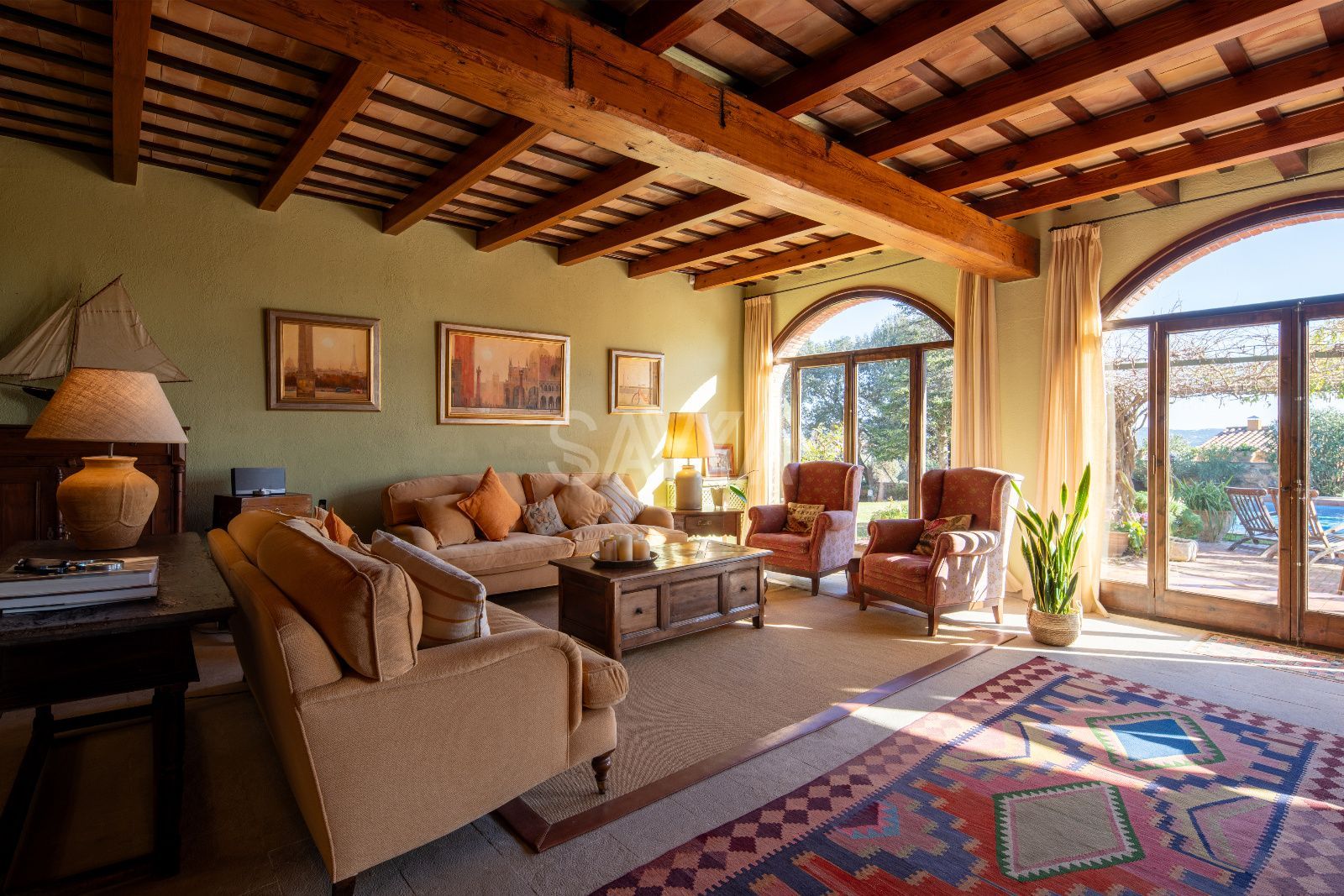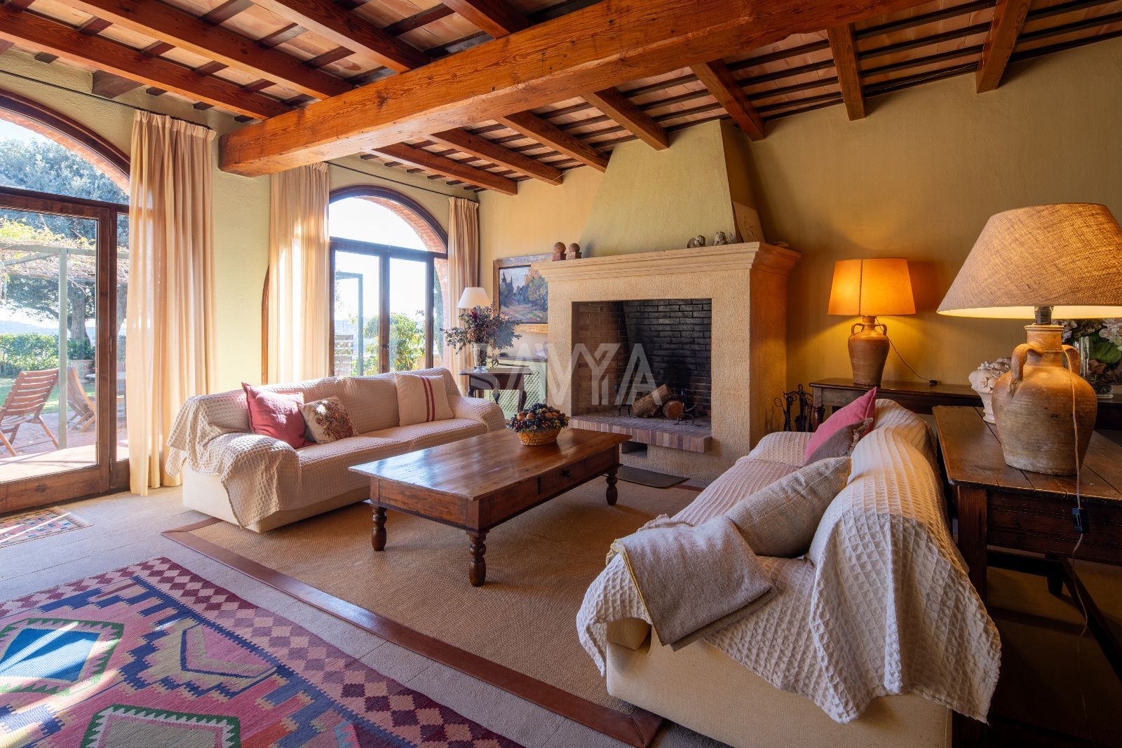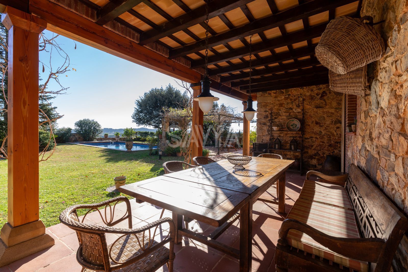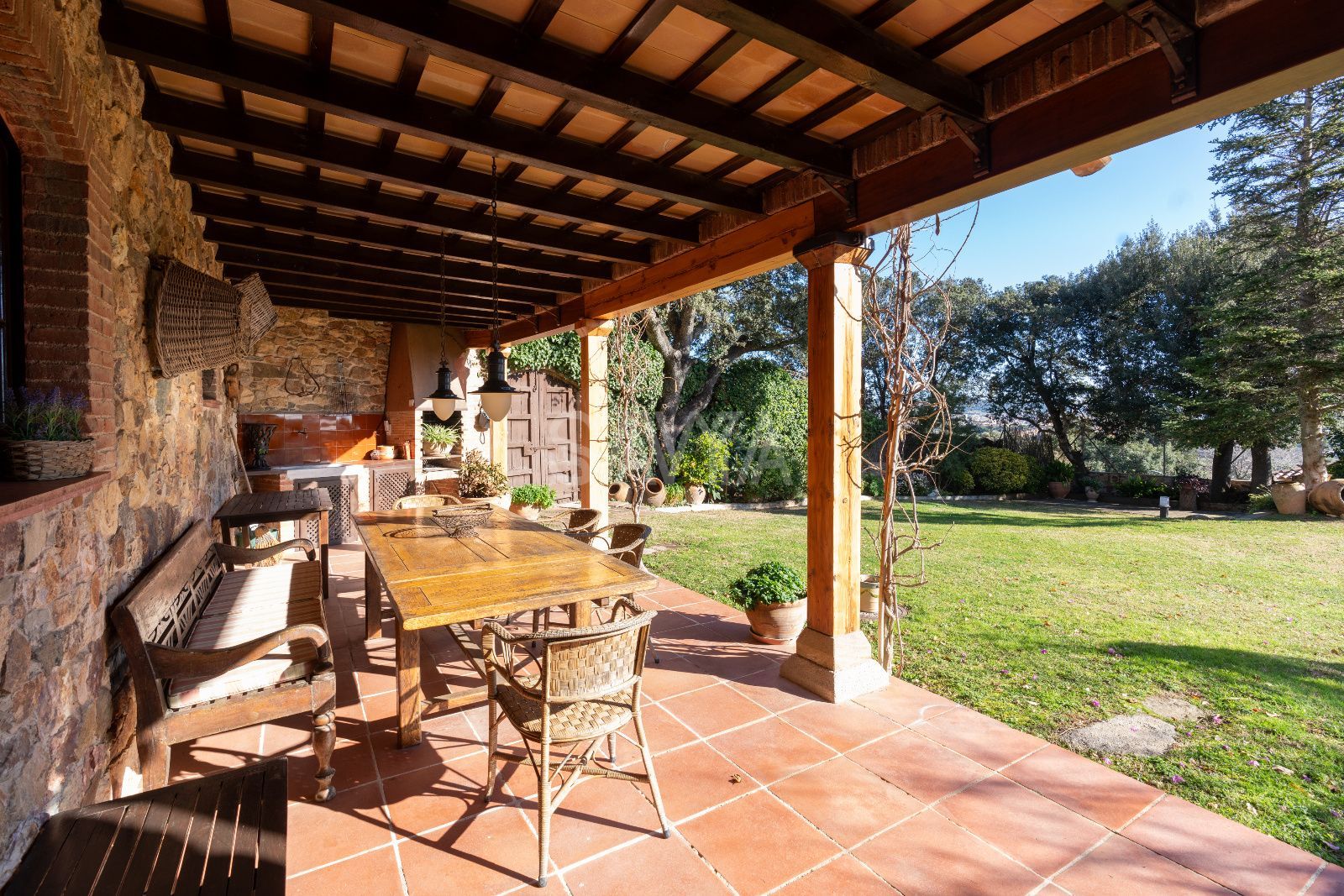 Esplendor i distinció al cor de Mont-ras: una peça arquitectònica única a la Costa BravaUbicada en un dels enclavaments més serens i codiciats de la Costa Brava, es presenta aquesta majestosa propietat senyorial que domina el paisatge des de la falda d'una colina a l'encantador municipi de Mont-ras. Situada a només deu minuts de les platges més exclusives del litoral, aquesta residència ofereix un equilibri inigualable entre la privacitat més absoluta, la independència residencial i unes vistes panoràmiques que abracen tota la plana fins a arribar a la línia de l'horitzó marí.Arquitectura noble i patrimoni històricLa propietat destaca per una fesomía noble i robusta, on cada detall arquitectònic ha estat preservat amb un zel impecable. L'estructura combina magistralment la solidesa de la tradició constructiva catalana amb les exigències del confort contemporani. Els seus murs gruixuts no només aporten una empremta històrica, sinó que garanteixen una inèrcia tèrmica excepcional durant tot l'any.Distribució interior: Elegància en cada estançaL'accés a la vivenda principal anticipa la magnitud de la finca. Un impressionant vestíbul amb techos abovedats de pedra original dóna la benvinguda als convidats, connectant amb una biblioteca privada i un saló-comedor distribuït en diversos ambients, dissenyat tant per a la vida familiar com per a la recepció d'infants a gran escala.Planta Baixa: A més de les zones socials, aquest nivell compta amb una cuina de grans dimensions amb accés directe al jardí, un bany de cortesia i una suite independent amb bany privat, ideal per a convidats o personal. Un porxo envidrigat permet gaudir de la llum natural en qualsevol estació.Planta Superior: Una escala de pedra de disseny senyorial condueix a la zona de descans. Aquí s'ubiquen cinc suites addicionals, cada una amb el seu propi bany complet. La suite principal s'erigeix com un santuari privat, dotada d'un generós vestidor i àmplies finestres que actuen com marcs naturals cap a les vistes espectaculars de l'entorn.Un oasi exterior privatL'exterior ha estat concebut per al gaudi del clima mediterrani. El jardí perimetral alberga una piscina de disseny, àmplies zones de porxo i una encantadora construcció independent: una "mini casa" d'invitats que disposa de habitació i bany propis, garantint la màxima autonomia per a les visites.Detalls d'alta gamma i moble de col·leccióLa propietat és un catàleg de materials nobles: bigues de fusta vists, terres de gran qualitat i una decoració exquisida basada en peces d'antiquariat recuperades amb extrem gust. La fusteria i el mobiliari fixa reforcen el caràcter exclusiu de la finca. Com a valor afegit, existeix la possibilitat d'adquirir el mobiliari d'antiquariat (preu a pactar), permetent mantenir l'essència estètica original de la casa.Comoditats i tecnologiaMalgrat el seu caràcter històric, la finca està equipada amb sistemes moderns que asseguren el benestar total, incloent calefacció centralitzada amb gasoil i aire condicionat en estances estratègiques. L'ampli garatge amb accés directe a la vivenda completa aquesta proposta d'alta gamma.Esta propietat representa una oportunitat irrepetible per adquirir no només una residència, sinó un llegat d'elegància i distinció en una de les ubicacions més privilegiades de Catalunya.