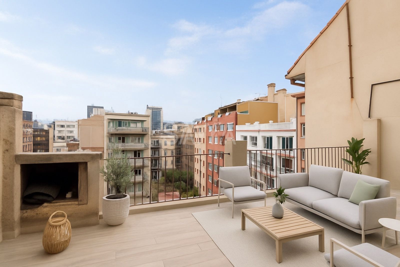 Se presenta un exclusivo ático dúplex situado en una de las ubicaciones más codiciadas de Barcelona, una pieza arquitectónica que destaca por su extraordinaria luminosidad y techos de gran altura.