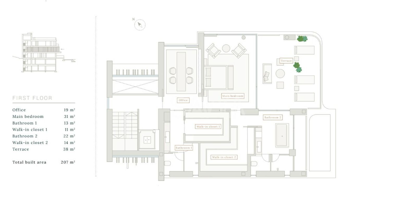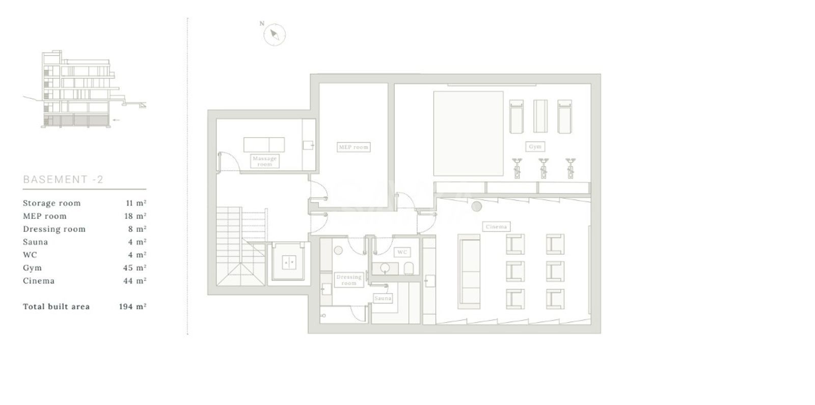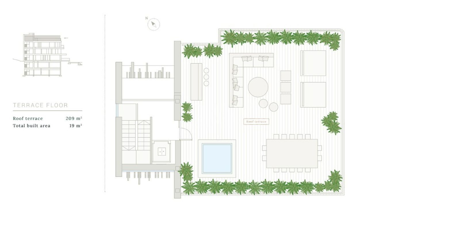 Entre sus prestaciones se encuentran espacios versátiles de descanso y recreo, jardines cuidadosamente diseñados y panorámicas vistas sobre Barcelona y el Mediterráneo. Además, incluye equipamientos de bienestar como gimnasio, sauna y zonas pensadas para ocio y entretenimiento.