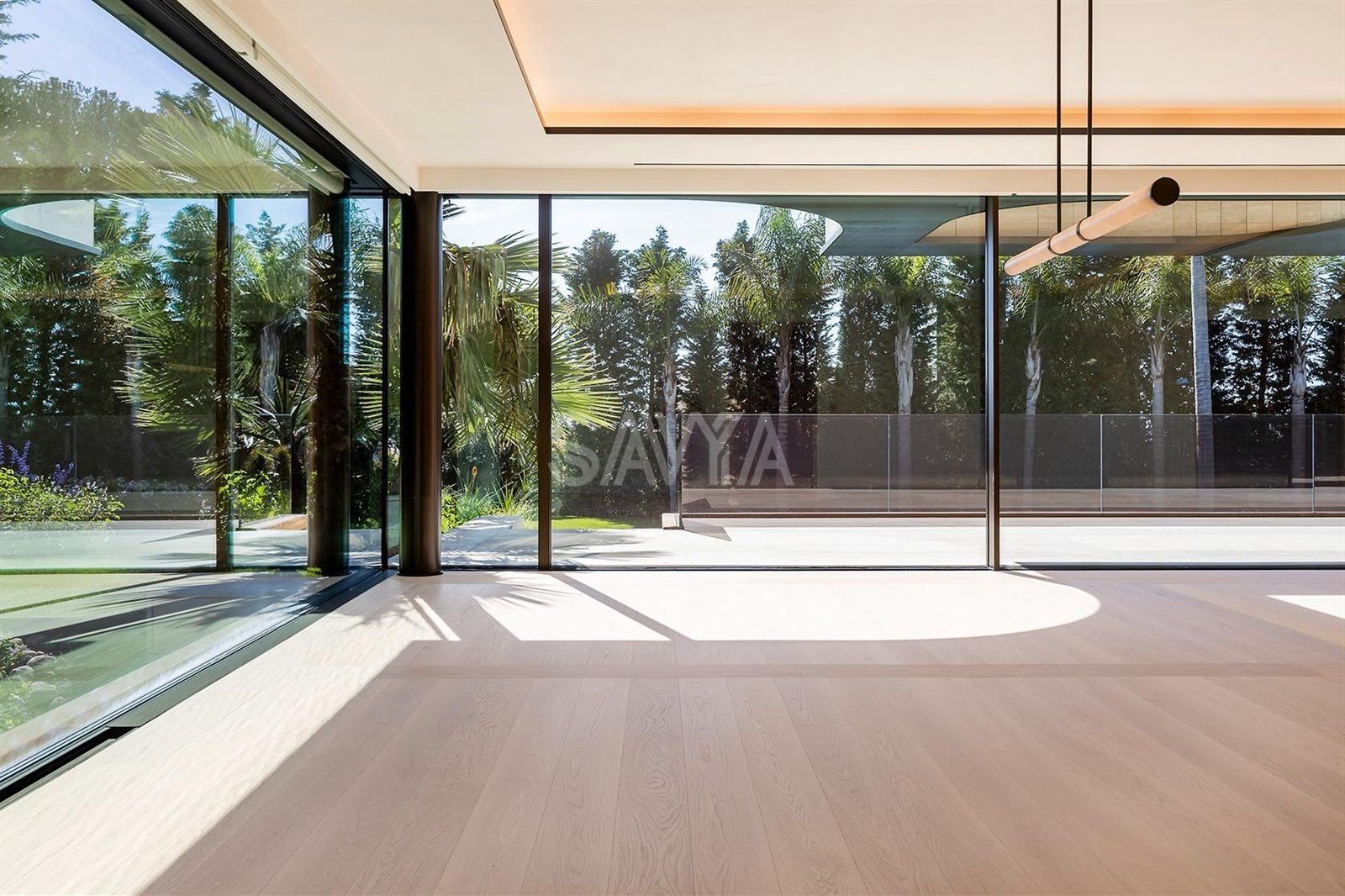 Los espacios comunes integran salón y comedor con acceso directo al jardín privado y piscina, creando una transición fluida entre interior y exterior. La cocina está inteligentemente situada para facilitar eventos y reuniones sociales.