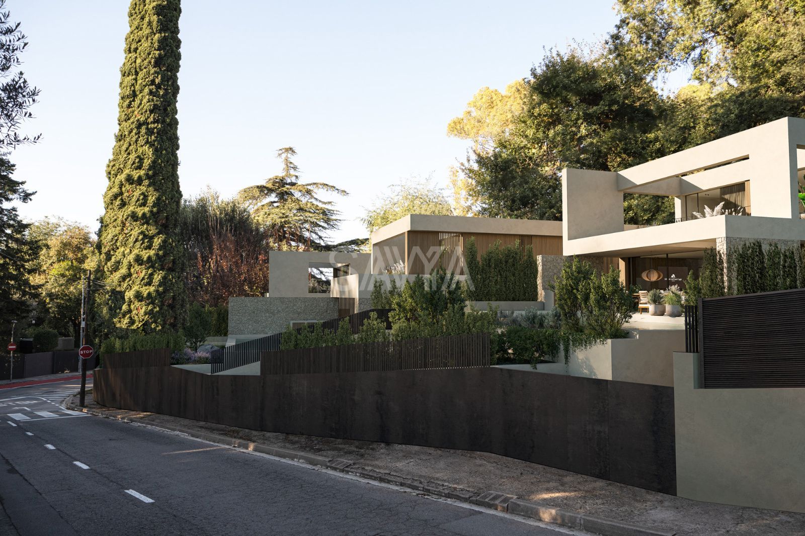 Cada villa dispone de jardines privados integrados en Collserola, con vegetación autóctona como limoneros, cipreses, pinos, magnolias y olivos centenarios.