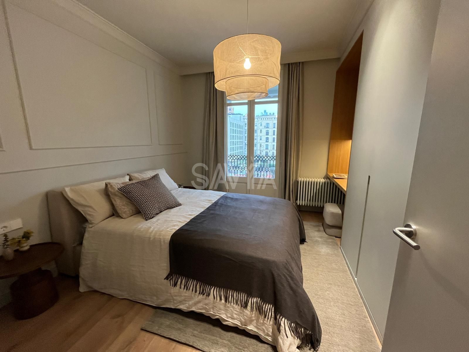Fusión equilibrada con elegancia entre lo clásico y lo moderno, nos encontramos con 203m2 en una distribución actual muy funcional que cuenta con dos zonas diferenciadas de día y de noche. Nada más entrar en la vivienda ya somos conscientes de su espectacularidad, con un amplio recibidor con armarios a medida y techos altos y su luminosidad.
