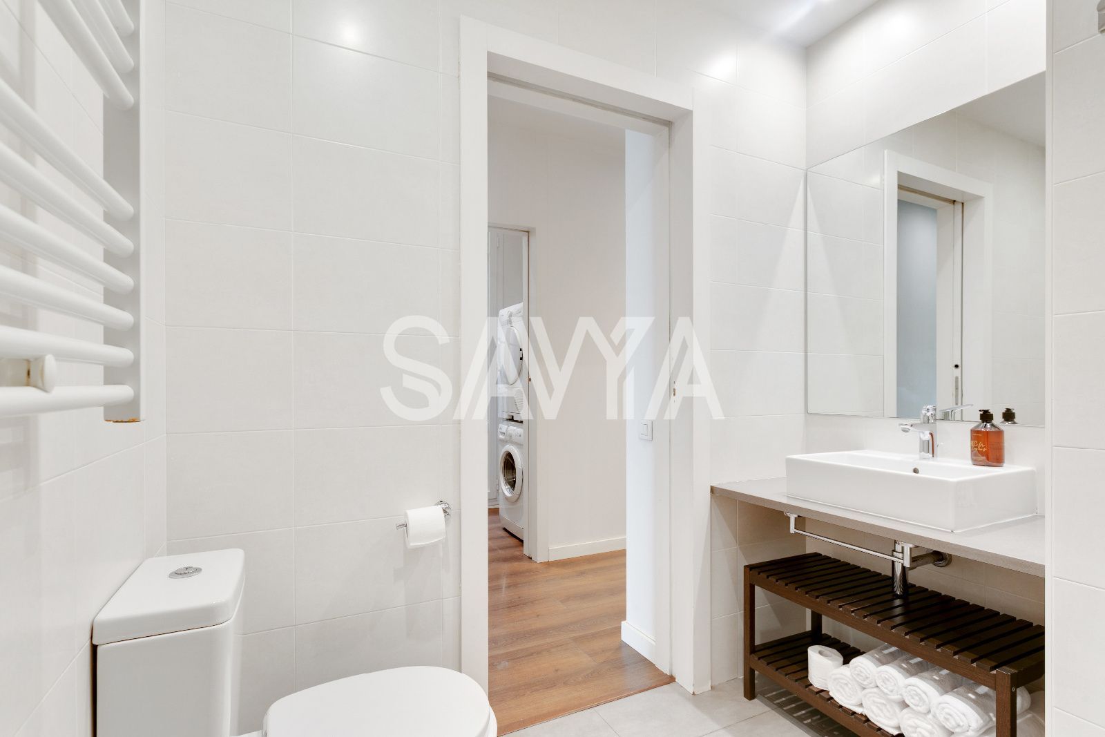 Inmueble ubicado en Barcelona, en la destacada zona de Ciutat Vella. Se distribuye en tres habitaciones y dos baños completos , con calefacción por bomba de calor y aire acondicionado para climatización óptima durante todo el año. La vivienda se presenta amueblada y totalmente equipada, con cocina amueblada y electrodomésticos modernos (lavadora, secadora, frigorífico y horno) que facilitan la vida diaria desde el primer momento. Sus suelos alternan parquet y gres, y las ventanas de aluminio con doble acristalamiento aportan eficiencia y confort.
