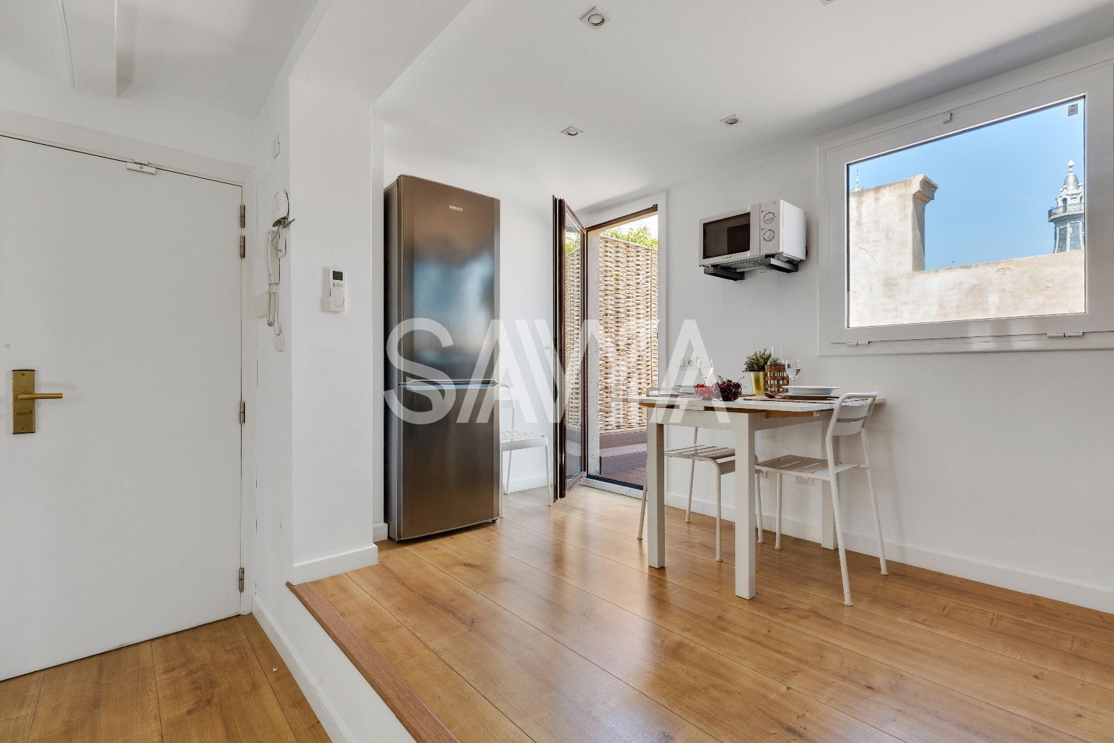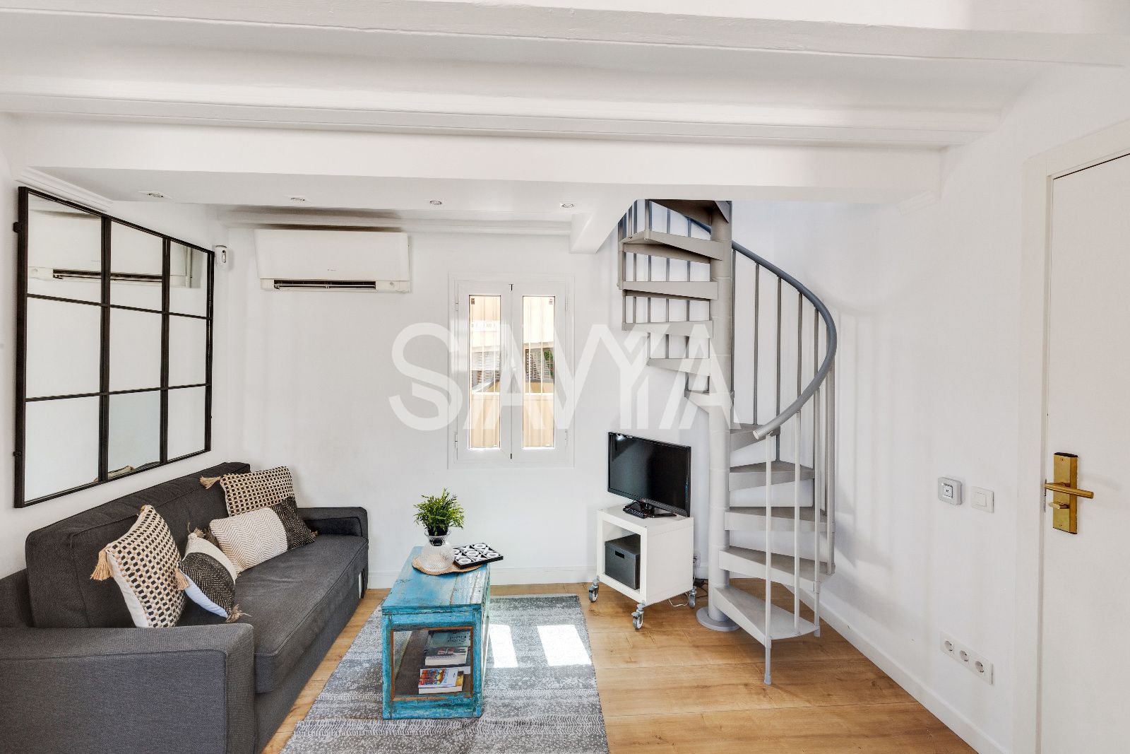 Inmueble ubicado en Barcelona, en la destacada zona de Ciutat Vella. Este dúplex de 1 habitación y un baño completo, dispone de calefacción por bomba de calor y aire acondicionado para climatización óptima durante todo el año. La vivienda se presenta amueblada y totalmente equipada, con cocina amueblada y electrodomésticos modernos (lavadora, secadora, frigorífico y horno) que facilitan la vida diaria desde el primer momento. Sus suelos alternan parquet y gres, y las ventanas de aluminio con doble acristalamiento aportan eficiencia y confort. Dispone además de una terraza privada de 36m2 con unas vistas espectaculares.