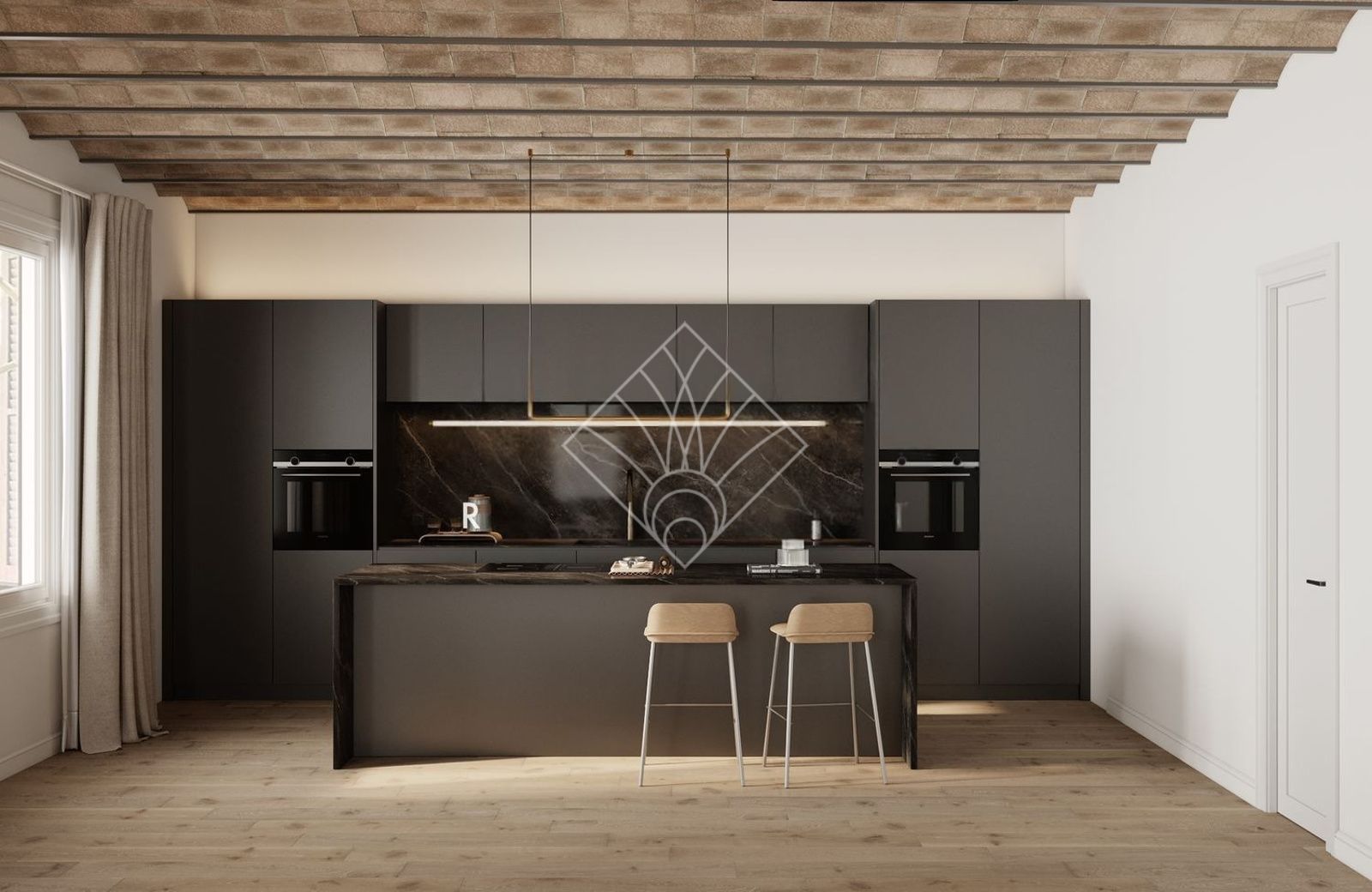 En la zona de día, un gran salón-comedor con volta catalana y cocina integrada con isla, 61 m2 con 1 balcón a la calle y 2 grandes ventanales, que inundan toda la estancia de luz natural, creando un ambiente acogedor y sofisticado. La cocina completamente equipada con electrodomésticos de gama alta de la marca MIELE, incluida una vinoteca, confieren al espacio, un ambiente funcional, práctico, elegante y muy agradable para el día a día. Cuenta, además, la zona de la cocina con una gran despensa separada. En la zona de día nos encontramos también, con un trastero y un baño completo.
