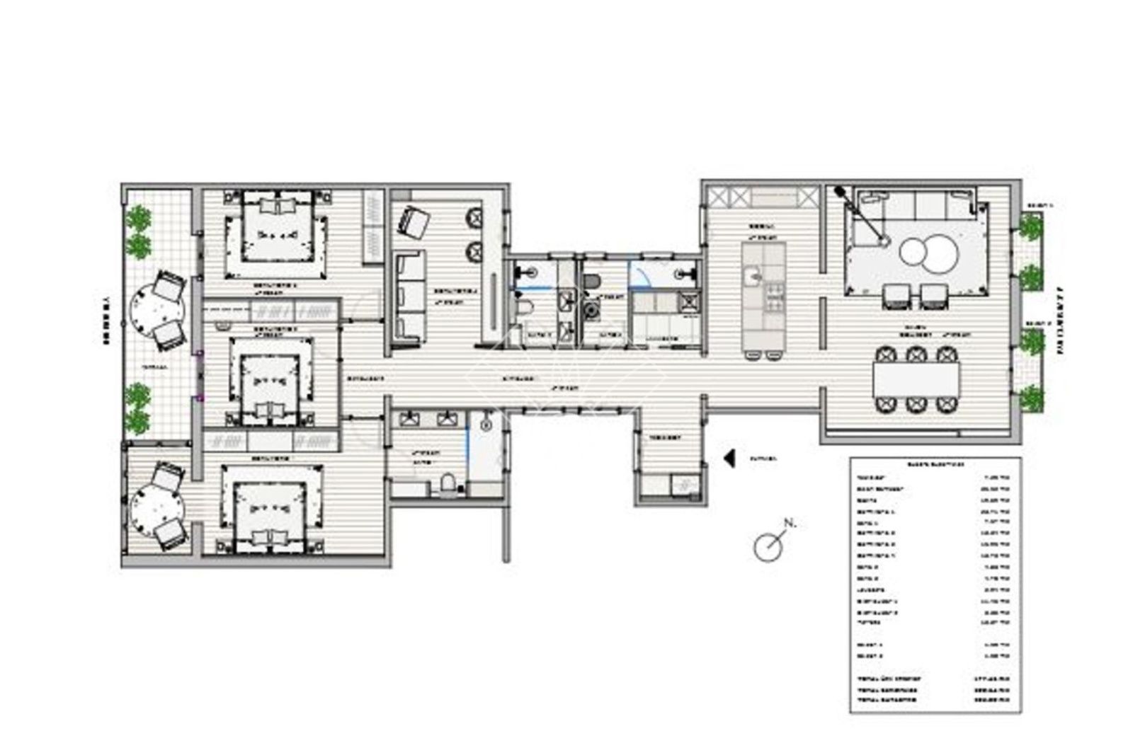 En la zona de noche, 4 habitaciones dobles, con dos amplios y elegantes baños completos, uno de ellos en la habitación suite que cuenta a su vez con una encantadora y soleada galería que invita a disfrutar de momentos relajados.